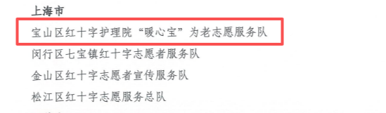 上海市宝山区月浦镇社区卫生服务中心于1992年冠名“上海市宝山区红十字护理院”,是宝山区三家冠名红十字医院之一。该院于2012年打造“红十字志愿服务伴我行”品牌,2023年结合老龄化社会需求,整合老年护理病房、安宁疗护中心、上海市中医药特色示范服务站等优势资源,由宝山区红十字会授旗正式成立宝山区红十字护理院“暖心宝”为老志愿服务队,重点为爱心病床老人、孤寡老人、晚期肿瘤患者及失能老人提供全周期关爱服务。2024年获评上海市红十字“博爱申城”志愿服务项目。