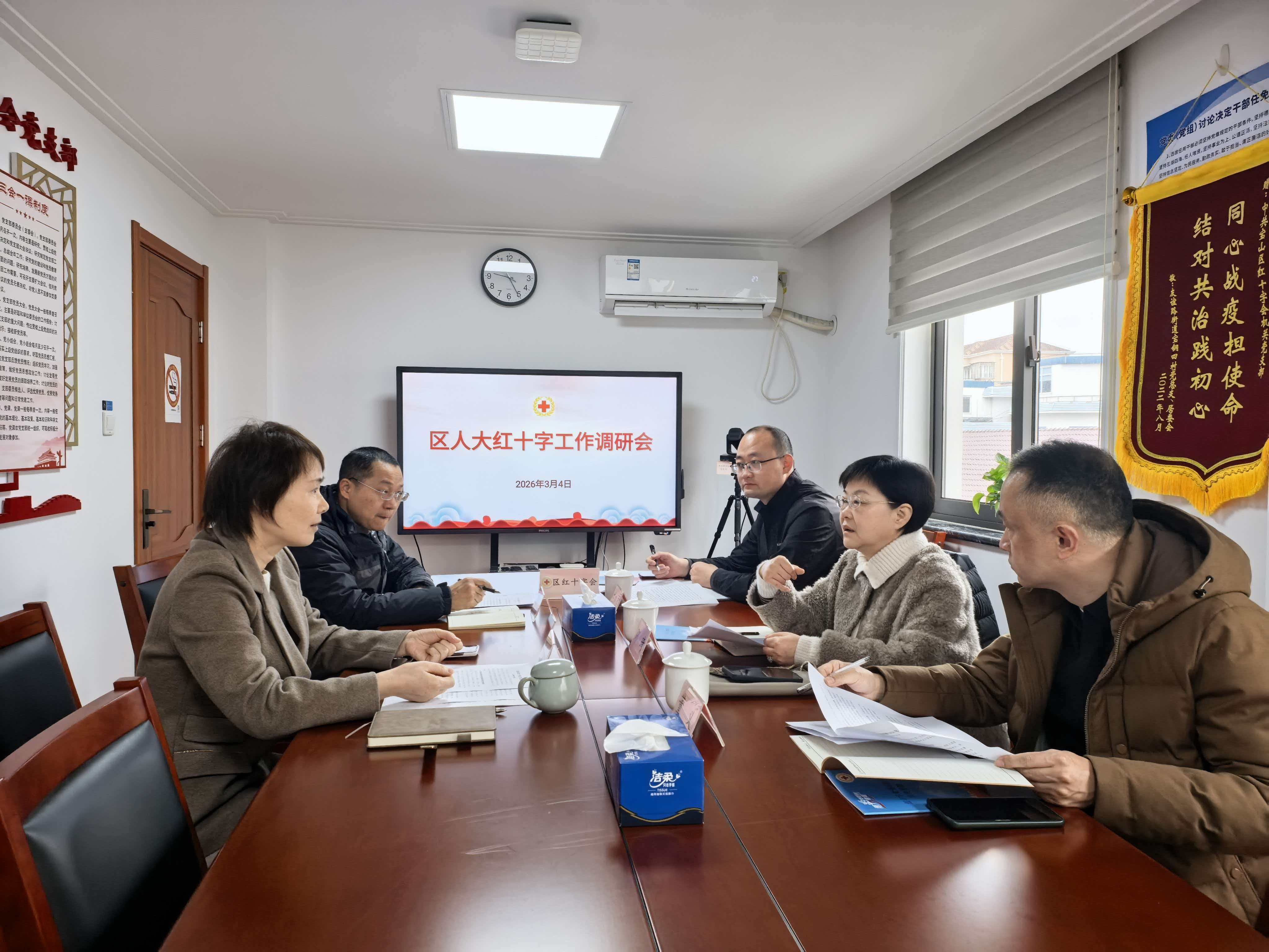 座谈调研时,邵琦副主任听取了区红十字会的基本情况、党组织履责情况、主责主业工作开展情况和下一步工作计划的专题汇报。