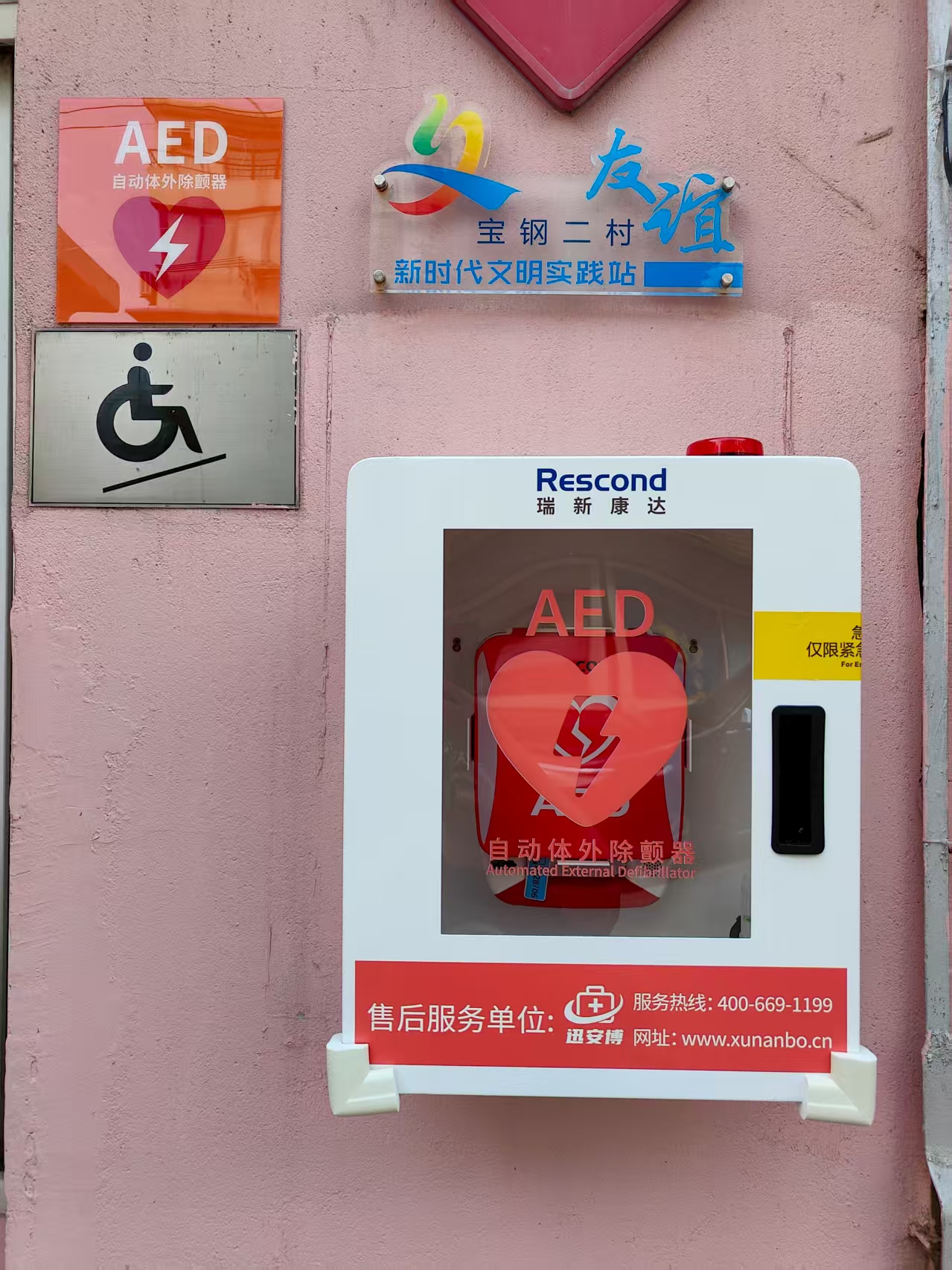近日,宝钢二村居委会门口新增了一台崭新的自动体外除颤器(AED),为社区应急救护增添重要保障。居委会红十字救护小队第一时间开展宣传,确保“技防+人防”同步落地,切实筑牢社区生命安全屏障。