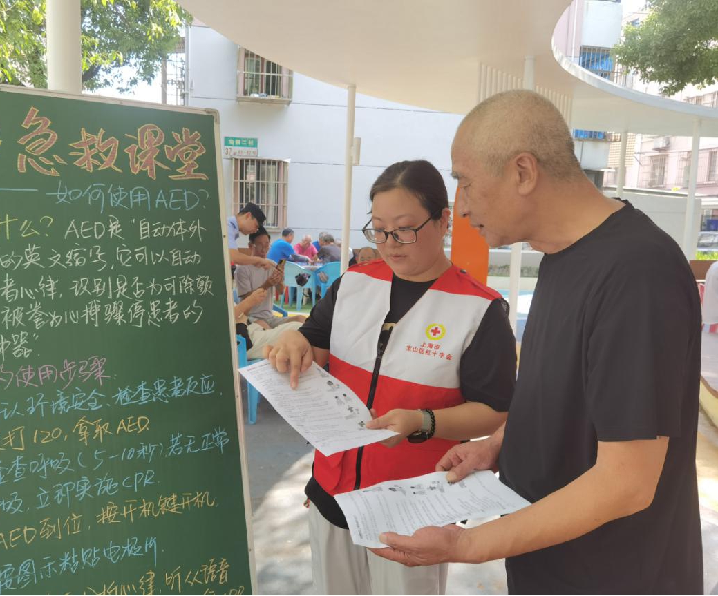 宝钢二村居委会红十字服务站在社区广场举办了一场别开生面的应急救护知识宣传活动。此次活动以“AED使用方法与应急救护”为主题,通过设摊宣传、黑板报展示、发放宣传品、现场实操教学等形式,将被誉为“救命神器”的自动体外除颤器(AED)相关知识送到居民身边。
