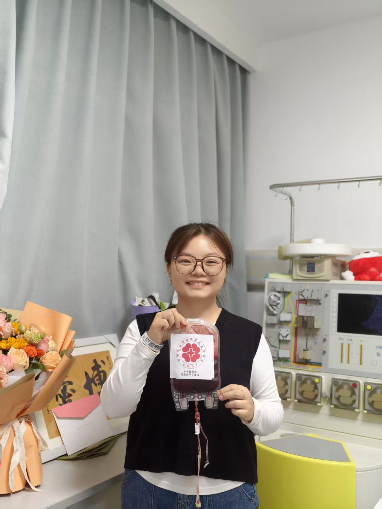 作为每天与患者打交道的医生,她见过太多生命与病魔抗争的坚韧,也深知这份“配型成功”背后的重量。四个多小时的采集过程中,她始终保持着平缓的呼吸,偶尔会和身边的医护人员轻声交谈,仿佛这不是一场特殊的捐献,只是一次寻常的值班。当采集仪器终于发出结束的提示音时,看着那袋承载着希望的造血干细胞混悬液被小心翼翼地封存,小张医生的脸上露出了释然的笑容。