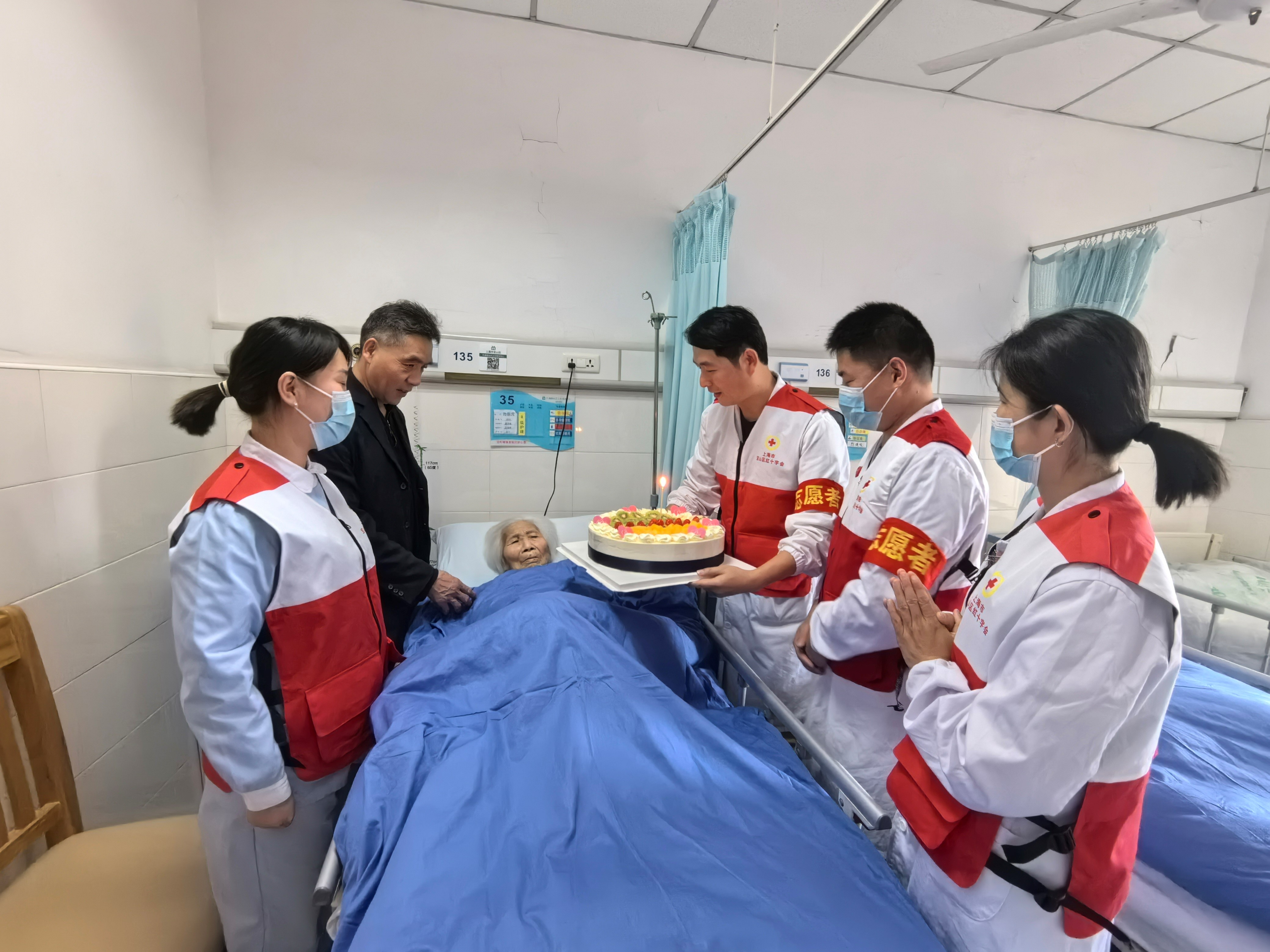 服务队以护理院党员、团员、青年为骨干,同步吸纳在校大学生、专业社工等红十字志愿者,科学组建12支5人制小分队(每队配备专职队长),形成“策划-执行-反馈”闭环管理机制。自“暖心宝”为老志愿服务队成立以来,参与开展了“月享健康 靠浦服务”义诊系列项目、“让春风进医院 让爱心进病房”红十字志愿者系列项目、“守护天使 临终关怀”志愿者项目、“月济常同”志愿协同项目。